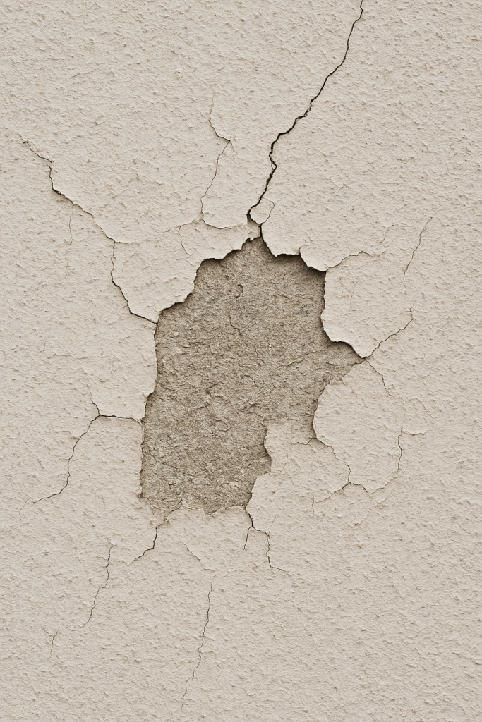 Trincas aparecem tanto em fachadas prediais quanto em muros e estruturas externas. Mesmo pequenas, permitem a entrada de água e aceleram o desgaste do material.