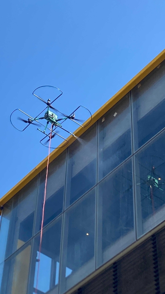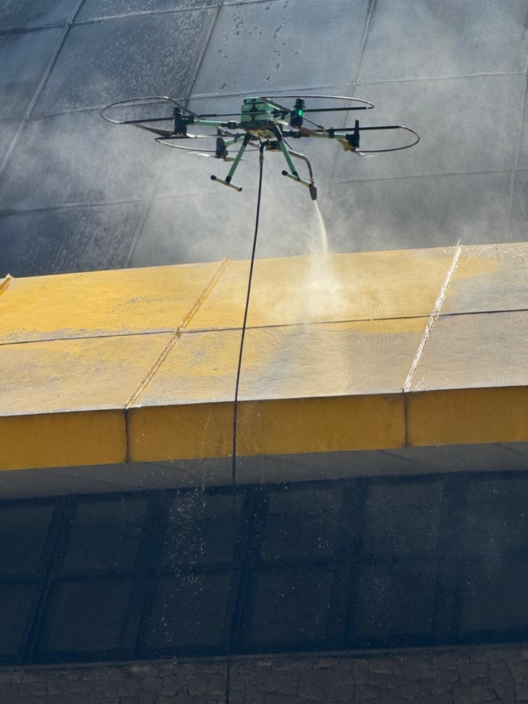 Os drones utilizados em limpeza técnica de fachada possuem estabilização inteligente, controle de altitude, giroscópio e mapeamento por GPS. Isso permite: