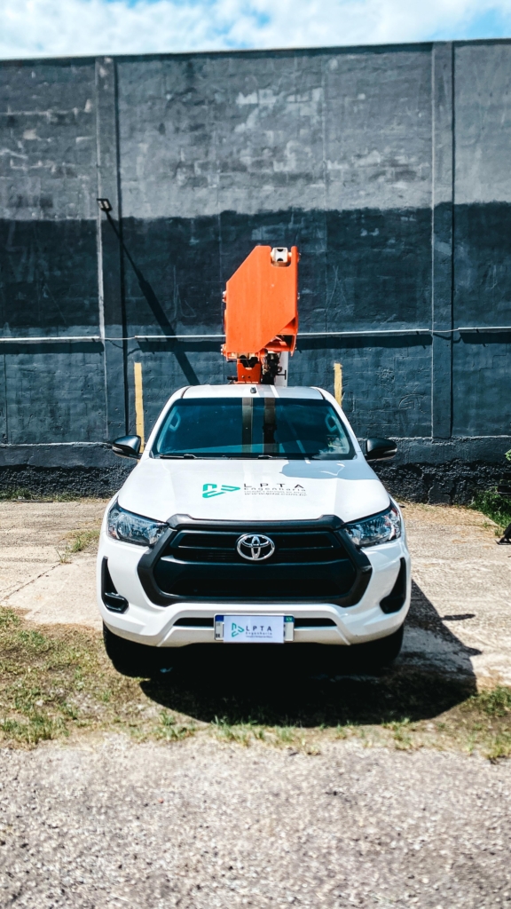 Indicada para serviços de manutenção elétrica, poda de árvores, instalação de câmeras e iluminação pública, a plataforma sobre picape oferece excelente alcance vertical, além de baixo consumo e alta eficiência operacional.