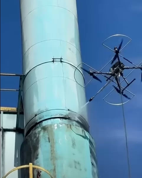 Os drones equipados com sistemas de pulverização e sensores de precisão realizam a aplicação uniforme dos produtos de limpeza e jatos de água, garantindo máxima eficiência na remoção de sujeiras, fuligem, resíduos industriais e poluentes atmosféricos. A operação é monitorada remotamente por profissionais treinados, garantindo total controle e segurança durante o processo.